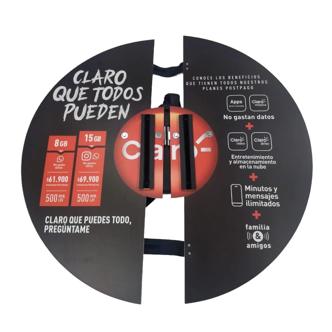 ✔️ Estructura tipo araña adaptable a la espalda del promotor.
